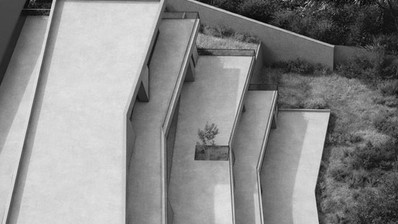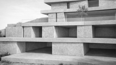 The architecture is defined by a composed sequence of terraces and layered volumes, creating a strong yet restrained presence that sits comfortably within its surroundings. Generous glazed openings frame the changing light and sea outlook, allowing interiors to remain closely connected to the landscape throughout the day.